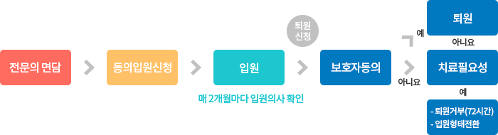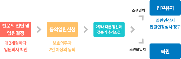 정신질환이 심각하여 입원치료의 필요성이 있다는 정신건강의학과 전문의의 진단이 있으나 환자가 입원치료를 거부하는 경우, 보호의무자 2인의 신청으로 진행되는 비자의적 입원 유형입니다.